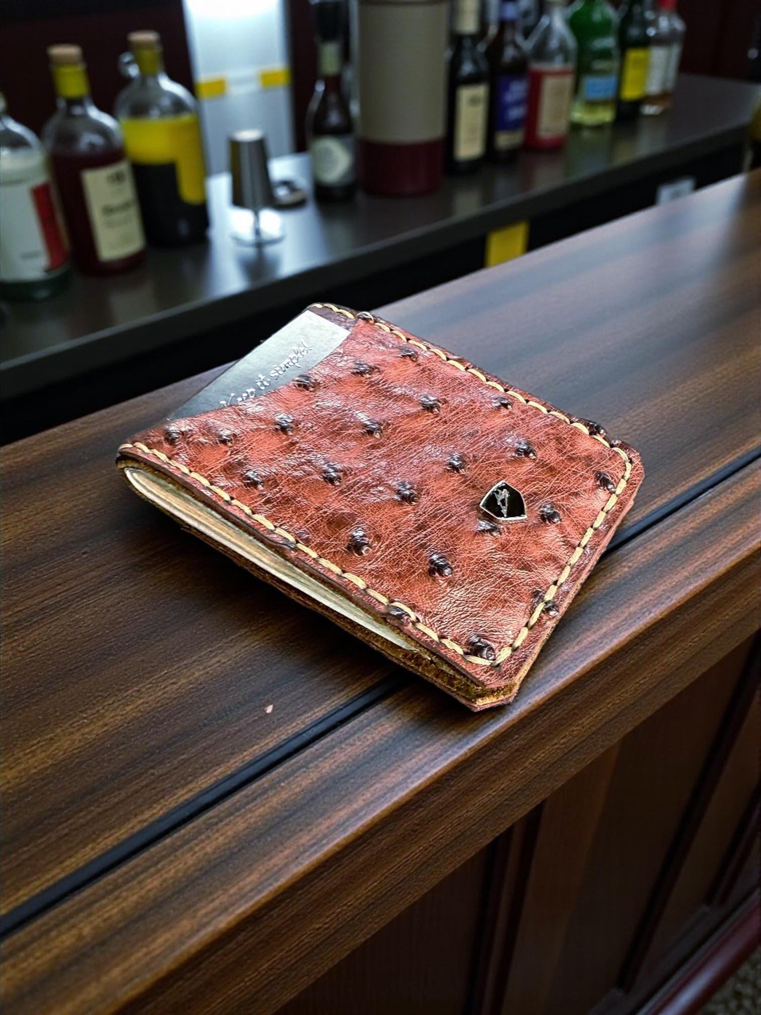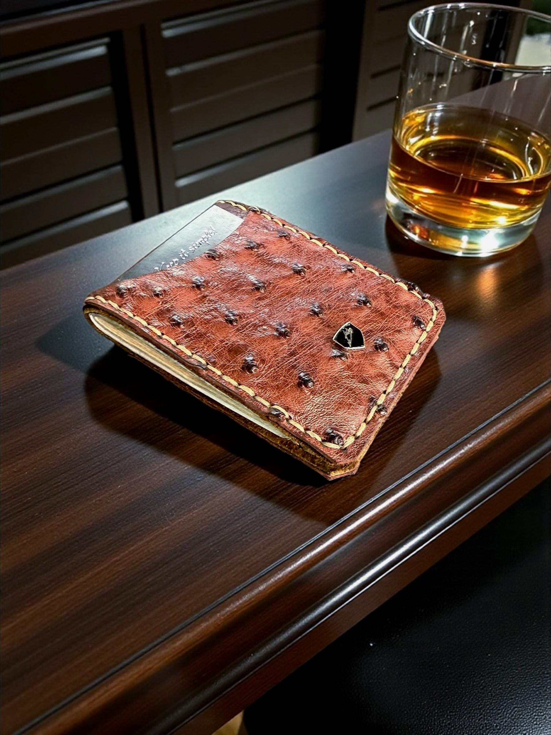 ostrich wallet, bison leather wallet, supple leather wallet, exotic leather wallet, customizable wallet, engraved leather wallet, money clip wallet, minimalist wallet, RFID blocking wallet, front pocket wallet, handmade wallet, men’s leather gift, USA made wallet, personalized wallet, luxury leather wallet